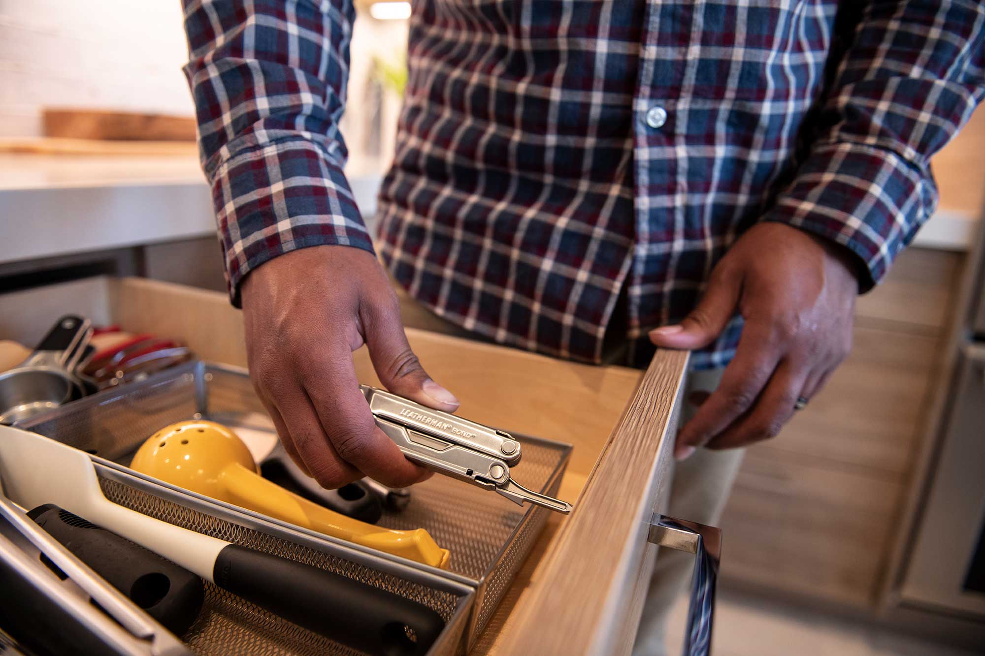 Inspiré de l’outil multifonction PST original de Tim Leatherman, le modèle Bond allie un design minimaliste à des outils hautement fonctionnels adaptés au travail à accomplir. Ne pesant que 141 g, cet outil à tout faire en acier inoxydable est doté de 14 outils essentiels, dont une pince, une lame de couteau en acier inoxydable 420HC durable et un ensemble de tournevis standard. Le manche du Bond est profilé pour vous offrir une prise en main confortable lorsque vous maniez les outils. Parfait pour ceux qui souhaitent s'offrir leur premier outil multifunction ou ceux qui veulent compléter leur boîte à outils. Le Bond est fourni avec un étui en nylon, mais vous pouvez également l'utiliser avec le clip de poche amovible (vendu séparément) pour profiter de plus de possibilités de transport.